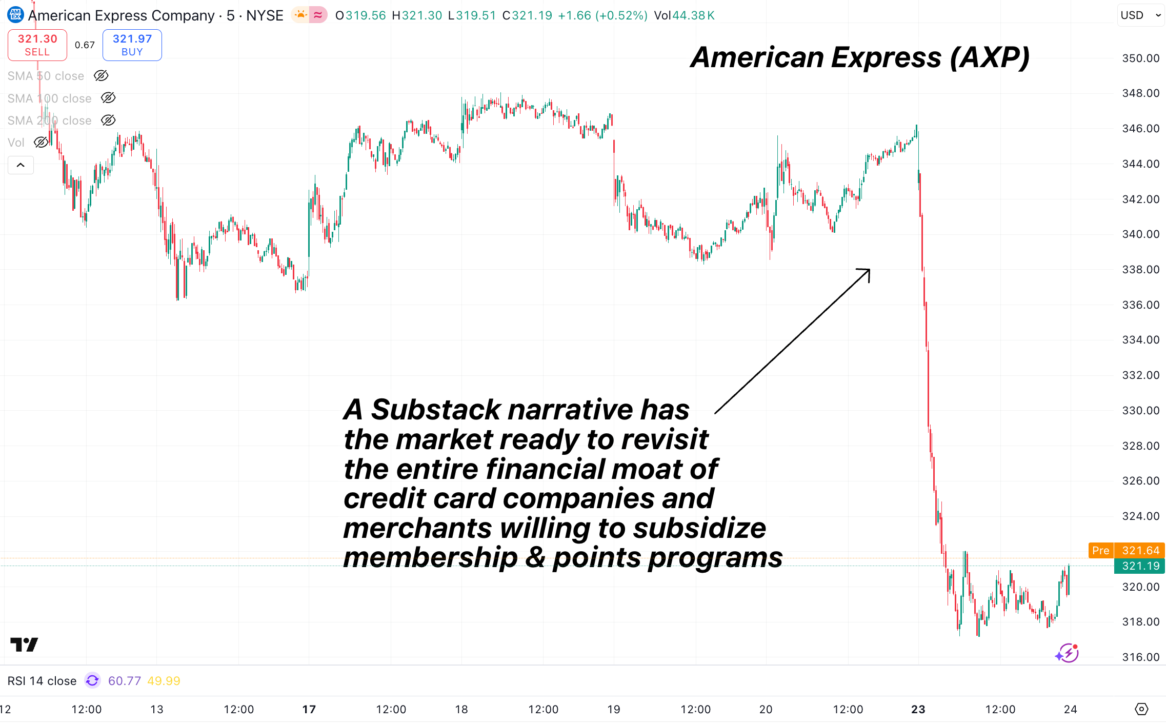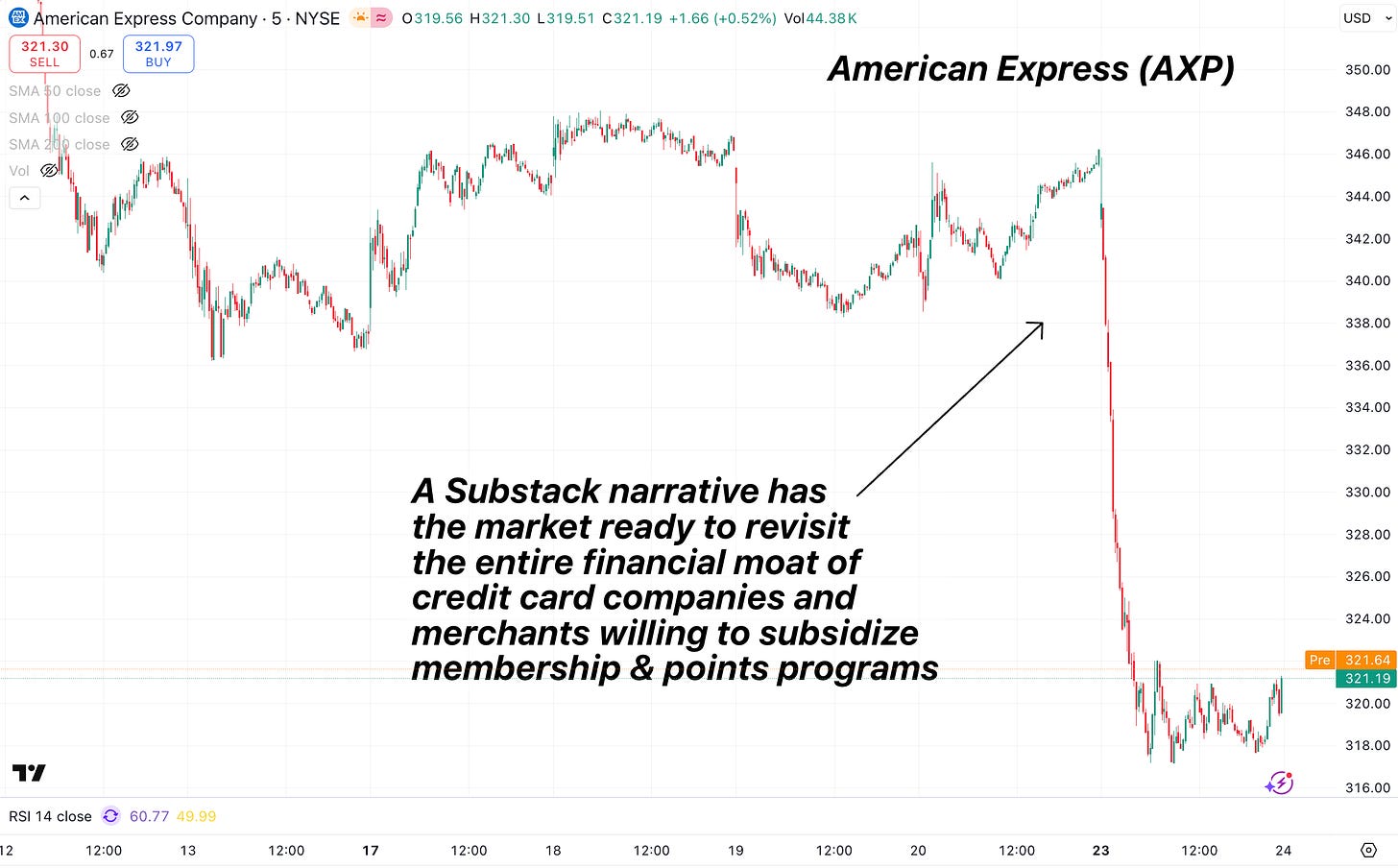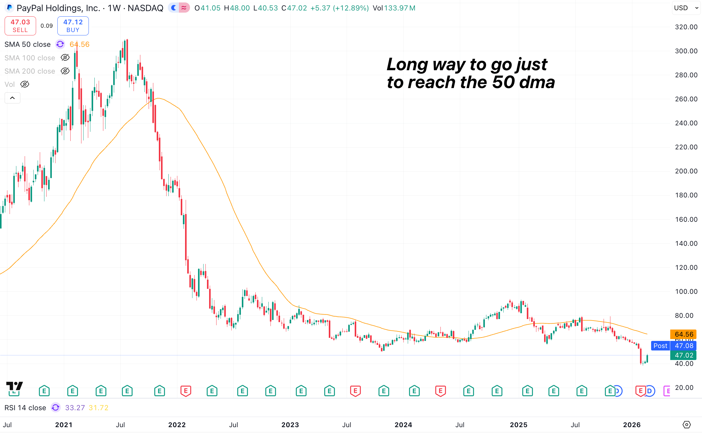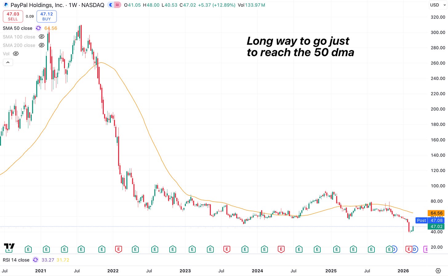 Citrini’s piece likely marks peak hysteria: "AI is sending everything to zero." Look at PayPal before the Stripe announcement. They own Venmo, which was recently valued at more than PayPal’s entire market cap. "Shockingly," someone wants to buy it now. Markets solve mispricings when humans panic.