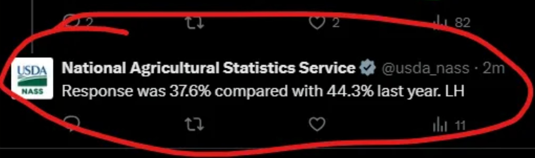 Most people can at least agree that this is not a reliable report after the UDSA put the response rate front and center. My first question is “why now?” Why did the USDA choose this report to make clear that the response rate was so poor? We’ve known this after all.